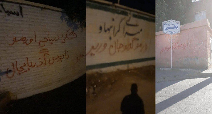 “خشکی دریاچه اورمیه =نابودی آذربایجان” و “اورمو گولو جان وئریر” نمونه ای از دیوار نویسی است که در سطح شهر اورمیه توسط فعالین آذربایجانی نوشته شده است.