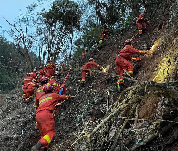 مقامهای امدادی در گوانگژو گفتند که در حال حاضر بیش از دو هزار نفر از نیروهای امدادی در محدوده سقوط این هواپیما در حال جستجو هستند و به گفته مقامات گوانگژو محل سقوط هواپیما یک جنگل کوهستانی است که جستجو برای جعبههای سیاه را نیز با دشواری مواجه کرده است.