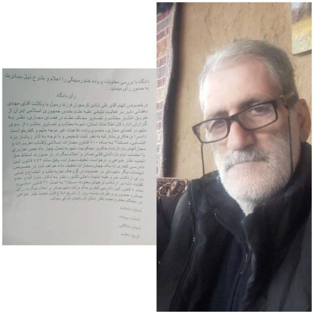 علی شادی، فعال ملی آزربایجان توسط دادگاه انقلاب جمهوری اسلامی ایران به چهار ماه حبس محکوم شد.
