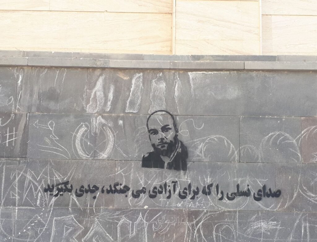 «صدای نسلی را که برای آزادی میجنگد؛ جدی بگیرید»؛ عنوان متن گرافیتی ثبت شده با تصویر روزبه پیری است که در دیوارهای مرکز شهر اردبیل ثبت شده است.