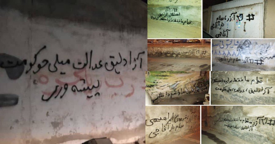 فعالین حرکت ملی با دیوارنویسی عنوان شعری از «رستم بهرودی» به نام (سلام دار آغاجی) همزمان اعتراضشان را نسبت به کشتار وقایع آذر ۱۳۲۵ در آذربایجان، اعدام فریدون ابراهیمی و اعدام های اخیر نشان داده اند.