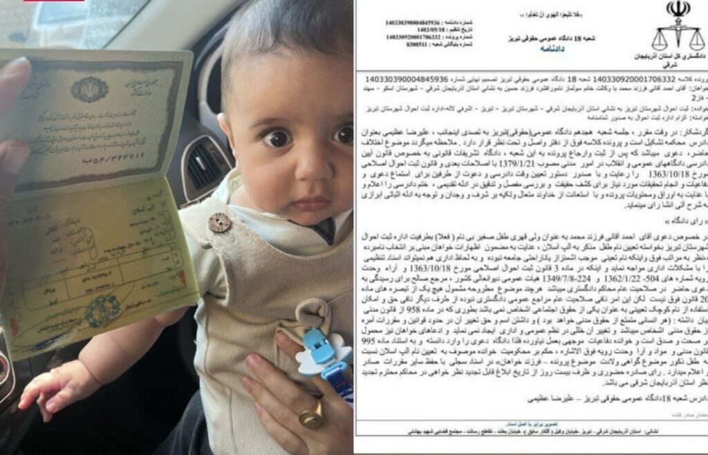 احمد آقایی، فعال حرکت ملی آزربایجان جنوبی و پدر این نوزاد، پس از مواجهه با مخالفت اداره ثبت احوال آزربایجان شرقی برای صدور شناسنامه، به یک مبارزه حقوقی نزدیک به شش ماهه دست زد. در نهایت نیز دادگاه تبریز، اداره ثبت احوال آزربایجان شرقی را موظف کرد که برای این نوزاد آزربایجانی شناسنامه صادر کند.