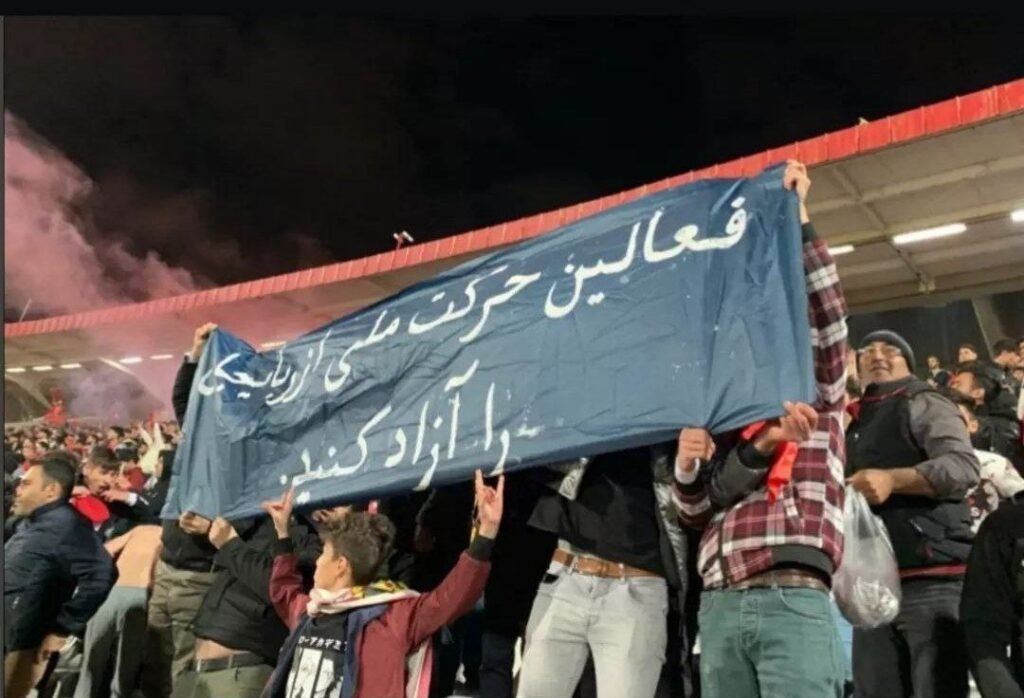 “فعالین حرکت ملی آذربایجان را آزاد کنید” عنوان متن بنر میباشد که در جریان بازی به اهتزاز در آمده است.