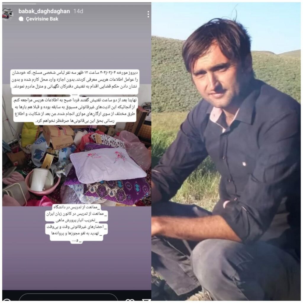براساس گزارشها، یک روز پیش از بازداشت وی چهارم خرداد، نیروهای اداره اطلاعات بدون ارائه حکم قضایی وارد محل کار و منزل مادر او شده و اقدام به بازرسی کامل این مکانها کرده بودند