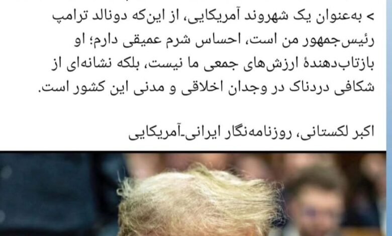 به‌عنوان یک شهروند آمریکایی، از این‌که دونالد ترامپ رئیس‌جمهور من است، احساس شرم عمیقی دارم؛ او بازتاب‌دهندهٔ ارزش‌های جمعی ما نیست، بلکه نشانه‌ای از شکافی دردناک در وجدان اخلاقی و مدنی این کشور است.
