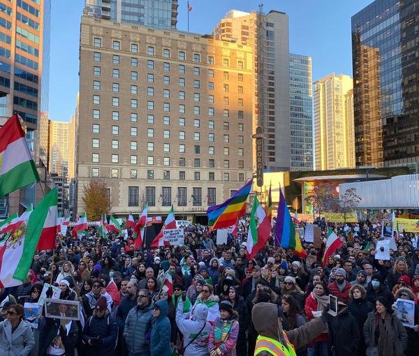 در تورنتو، هزارن نفر از ایران و کنشگران در تجمعی به سخنرانی در حمایت از خیزش سراسری ایران و اجراهای هنری پرداختند. تجمعکنندگان همچنین با برگزاری تظاهرات در مرکز این شعر، شعارهای «زن، زندگی، آزادی» سر دادند.