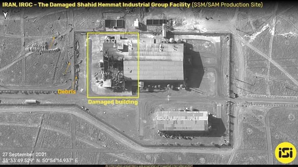 تصاویر ماهواره ای که روز پنجشنبه ۸ مهر از سوی ایمیج ست اینترنشنال منتشر شده، نشان میدهد مکانی که به عنوان “مرکز تحقیقات” خودکفایی توصیف شده است و روز دوشنبه آتش گرفت، محل ذخیره موشک برای سپاه پاسداران است.