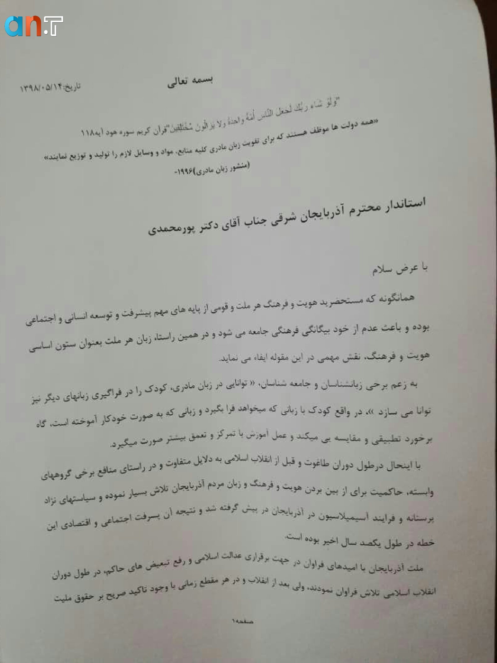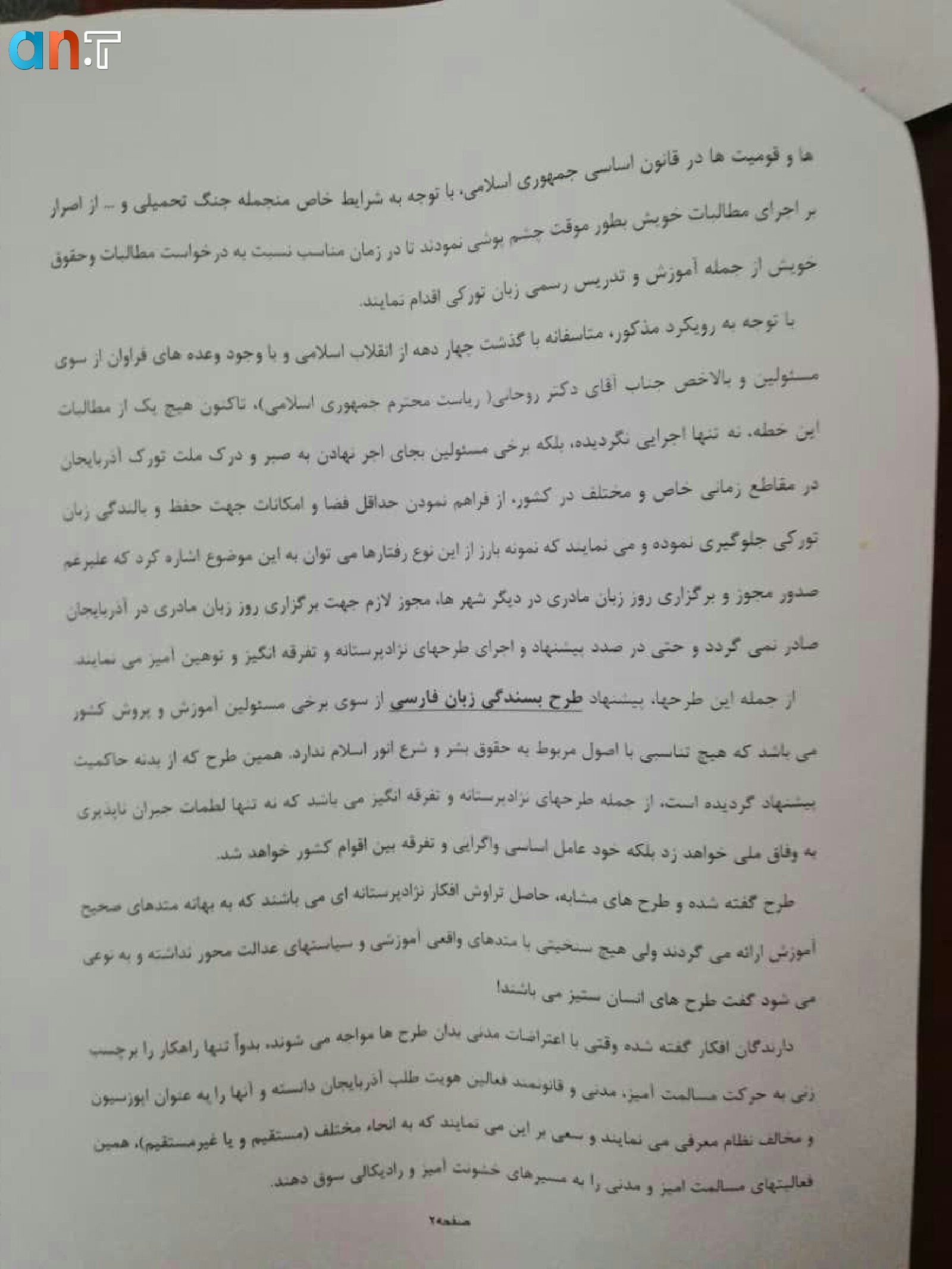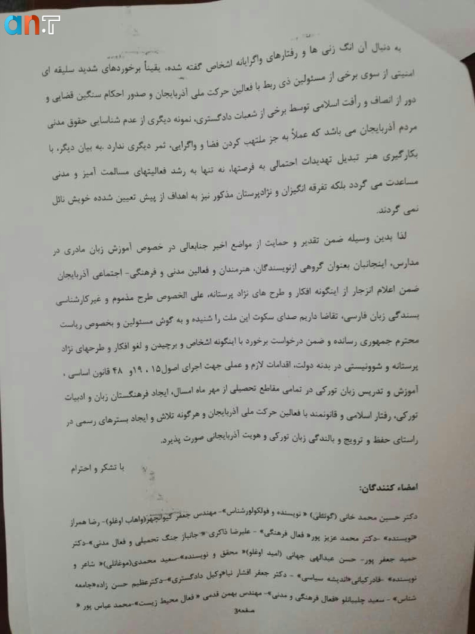 تصاویر/ نامه اعتراضی جمعی از فعالین حرکت ملی آذربایجان به استاندار آذربایجان شرقی