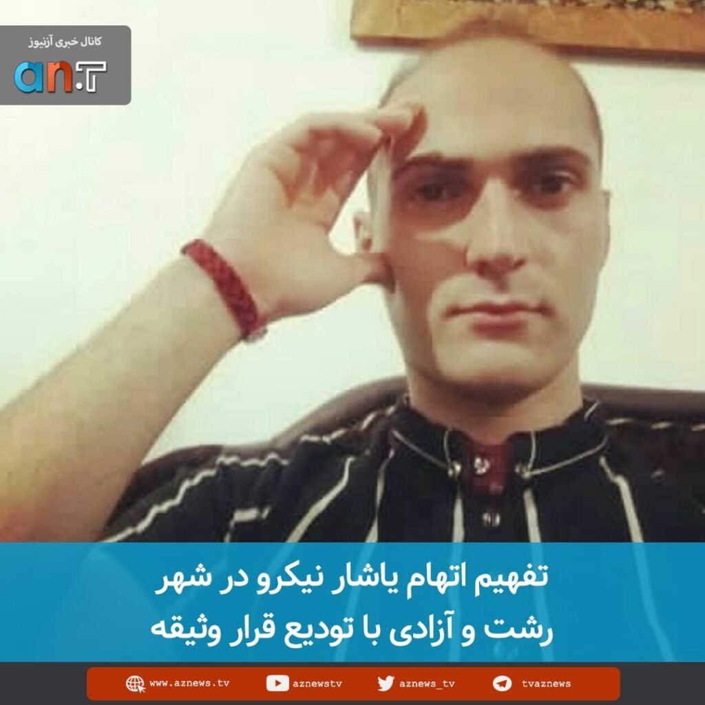 طی اطلاع نزدیکان یاشار نیکرو فعال ملی مدنی آزربایجانی ساکن رشت، ایشان روز یکشنبه ۲۲ اسفند ۱۴۰۰ به اداره اطلاعات احضار و بعد از بازجویی کوتاه به دادسرای عمومی و انقلاب رشت منتقل شده است این فعال مدنی پس از تفهیم اتهام توسط بازپرس پرونده با تودیع قرار کفالت ۸۰ میلیون تومانی تا پایان مراحل دادرسی آزاد می گردد.