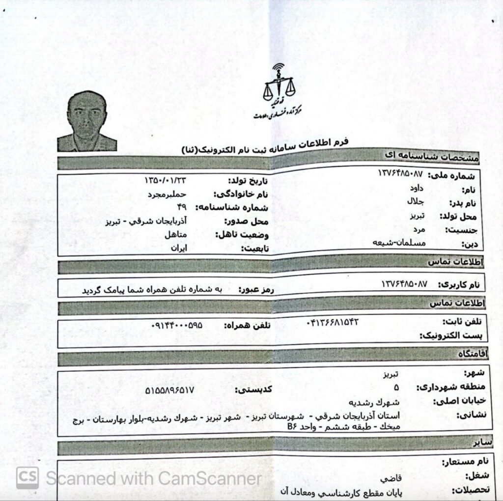 داود حملبر مجرد، ۵۲ ساله، متولد تبریز، شماره شناسنامه ۴۹، به شماره ملی ۱۳۷۶۴۸۵۰۸۷ و رئیس شعبه یک دادگاه انقلاب تبریز. او چهرهای آشنا برای تمامی فعالان سیاسی و مدنی در تبریز است. صدور احکام اعدام، زندان، شلاق، تبعید و جریمههای سنگین مالی، ممانعت از ارائهی دفاعیه از سوی وکلای متهمان، رفتارهای توهینآمیز با متهمان و تهدید خانوادههای آنها و عدم رعایت اصول اولیه دادرسی منصفانه، از پرتکرارترین رفتارهای فراقانونی این مقام قضایی است.