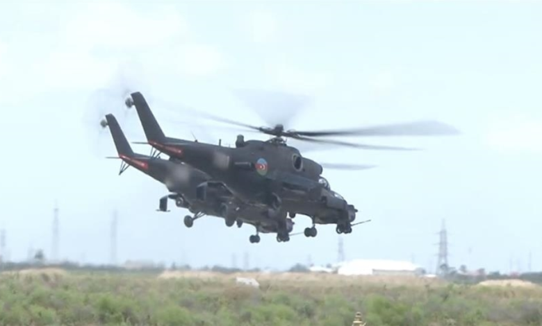 بنا به اعلام وزارت دفاع آذربایجان، بالگردهای نظامی دو کشور مواضع پدافند هوایی، فرماندهی و تجمع دشمن شبهسازی شده را از فواصل دور و نزدیک منهدم کردند.