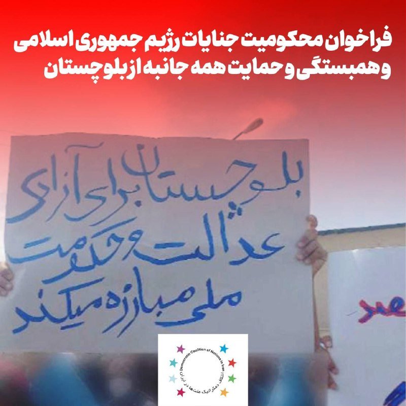ائتلاف دمکراتیک ملت ها در ایران، ملل تحت ستم، احزاب اپوزیسیون سراسری، جامعه جهانی، سازمان ها و ارگان های بشر دوست بین المللی را به محکومیت این جنایات و قتل عام مردم بی دفاع و همبستگی و ایستادن در کنار ملت بلوچستان فرا می خواند.