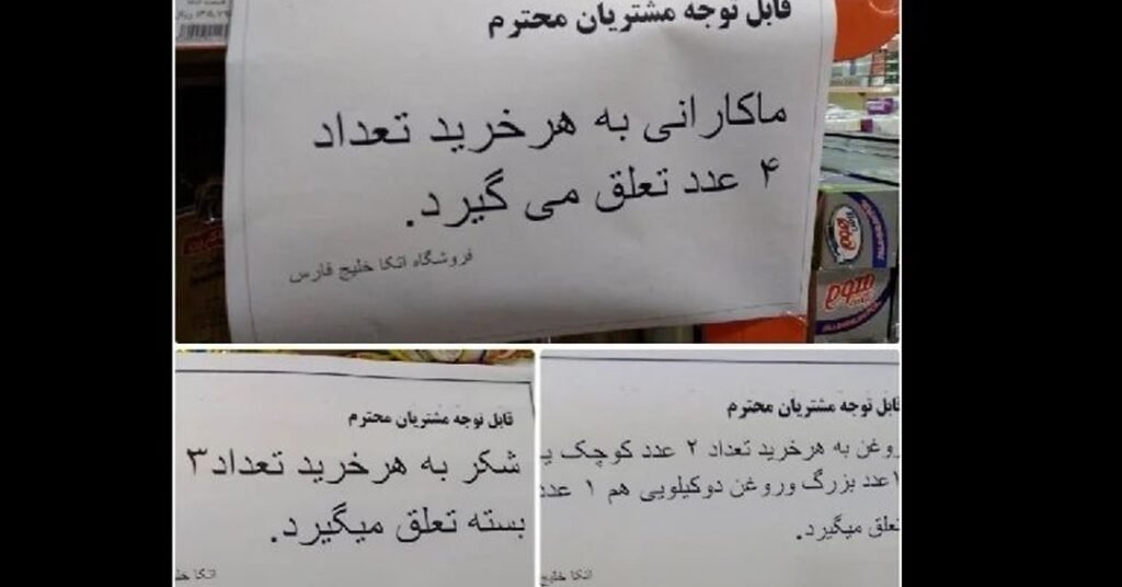 افزایش ناگهانی قیمت ماکارونی باعث سهمیهبندی ماکارونی شده و برخی فروشگاهها تنها بین دو تا شش بسته ماکارونی به هر مشتری میفروشند.