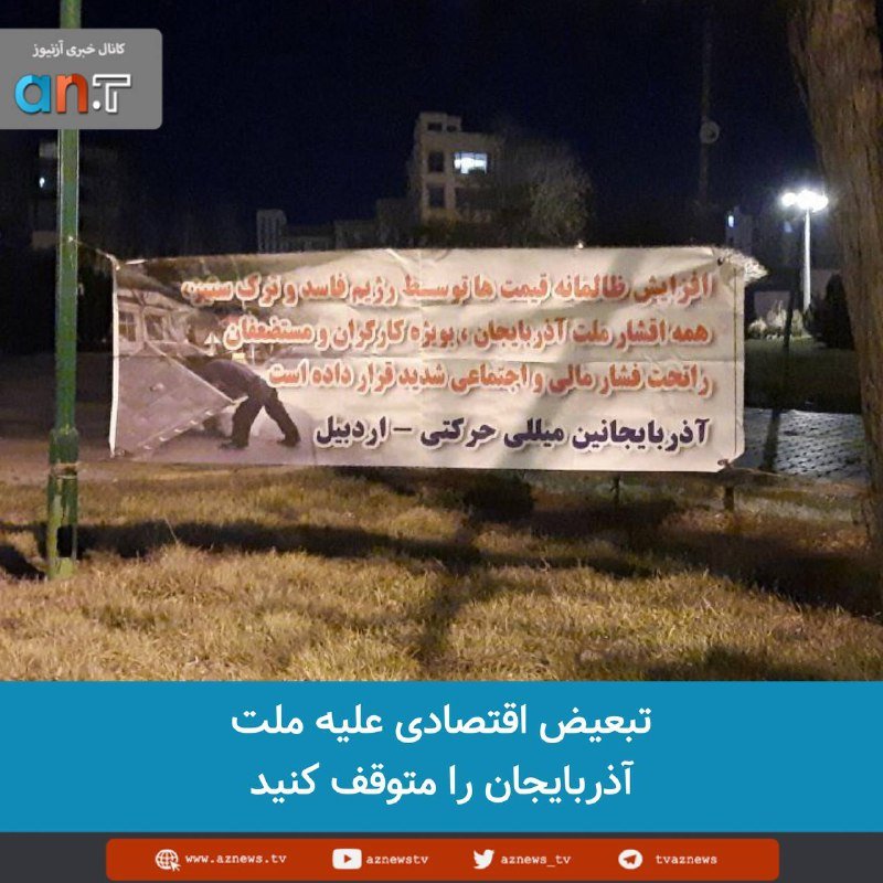 مضمون متن بنر اعتراضی است که توسط فعالین ملی مدنی آزربایجان جنوبی در یکی از پارکهای اردبیل نصب گردیده است.