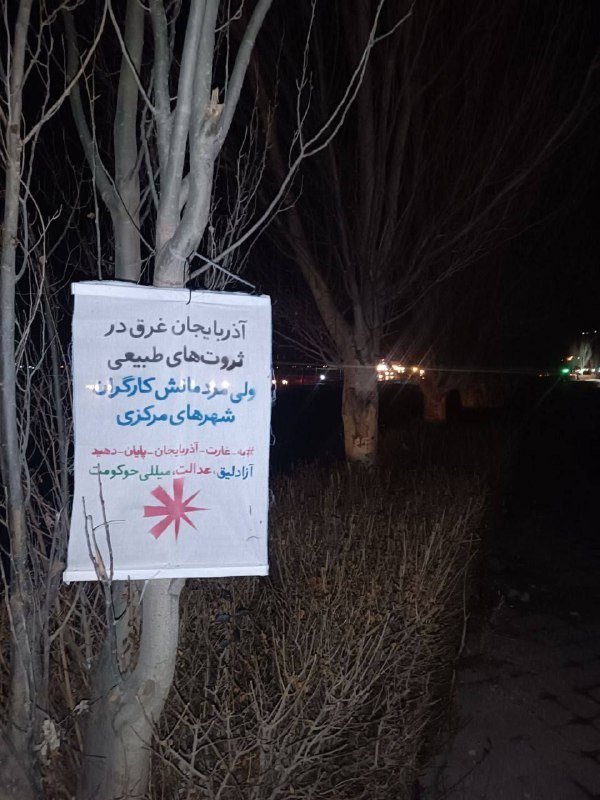 در بنرهای جداگانهای که همزمان در محلات شهر تبریز نصب شده، متون « ملت آذربایجان زیر تیغ فقر و گرانی جان میدهد / فلجکردن عمدی اقتصاد آذربایجان را محکوم میکنیم»، «آزادلیق، عدالت، میللی حوکومت / اینسانلارا آزادلیق، میللتلره ایستیقلال»، «آذربایجان غرق در ثروتهای طبیعی ولی مردمانش کارگران شهرهای مرکزی» ، «آزادلیق، عدالت، میللی حوکومت»و «#به_غارت_آذربایجان_پایان_دهید» نقش بسته است.