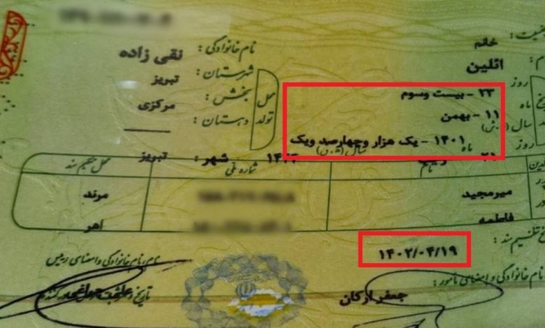 ائلین نوزاد آذربایجانی اهل تبریز پس از ۵ ماه مجادله حقوقی روز ۱۹ تیرماه ۱۴۰۲ صاحب شناسنامه شد.