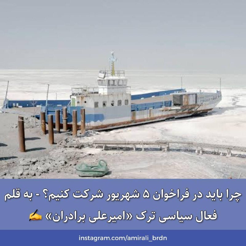 ۵ شهریور باید در خیابانها حاضر شویم تا دریاچه اورمیه را نجات دهیم، اگر ۵ شهریور سکوت کنیم به خودمان، به نسل آینده و در کل به آذربایجان خیانت کردهایم.