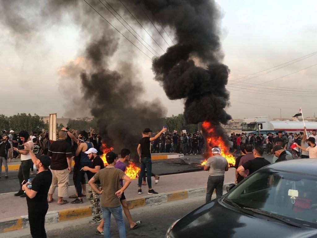 رسانه های عراقی اعلام کردند نیروهای امنیتی از گاز اشک آور برای متفرق کردن مردم معترض استفاده کرده اند.