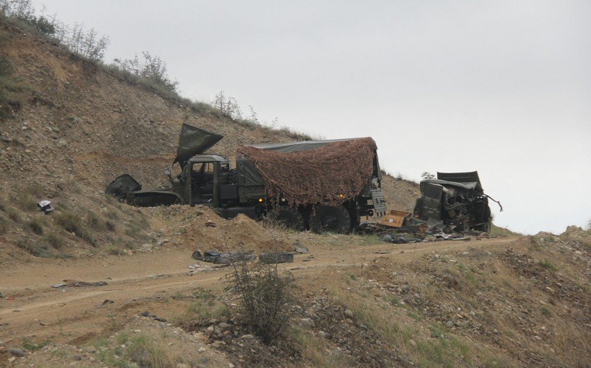 Azərbaycan Müdafiə Nazirliyi düşmənin döyüş meydanında atıb qaçdığı döyüş sursatı, zirehli və avtomobil texnikalarının videogörüntüsünü yayıb.