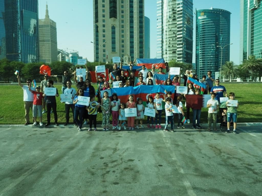 Diasporla İş üzrə Dövlət Komitəsindən verilən məlumata görə, Azərbaycanın şanlı qələbəsi münasibətilə Qətərdəki Azərbaycan diasporunun təşkilatçılığı ilə Doha şəhərində müşın yürüşü təşkil edilib. Azərbaycan, Türkiyə və Qətər bayraqlarının dalğalandırıldığı tədbirdə uşaqdan böyüyə hər kəs “Şuşa Azərbaycandır”, “Qarabağ Azərbaycandır”, “Biz qalibik” kimi şüarlar nümayiş etdiriblər. Həmvətənlərimiz Qarabağın gözü olan Şuşa şəhərində, eyni zamanda işğaldan azad olunmuş başqa torpaqlarımızda üçrəngli bayrağımızın dalğalandırılmasından qürur duyduqlarını və qazanılan qələbəyə görə şanlı Azərbaycan Ordusuna, Azərbaycan cümhurisinin Prezidenti, Müzəffər Ali Baş fərmandeh İlham Əliyevə minnətdarlıqlarını bildiriblər.