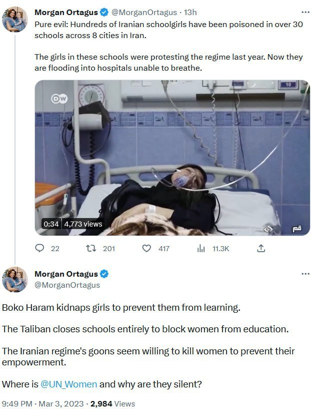 ABŞ Dövlət Departamentinin keçmiş sözçüsü Morqan Orteqas İranda baş verən qız məktəblərində kütləvi zəhərləmələrə reaksiya verib: