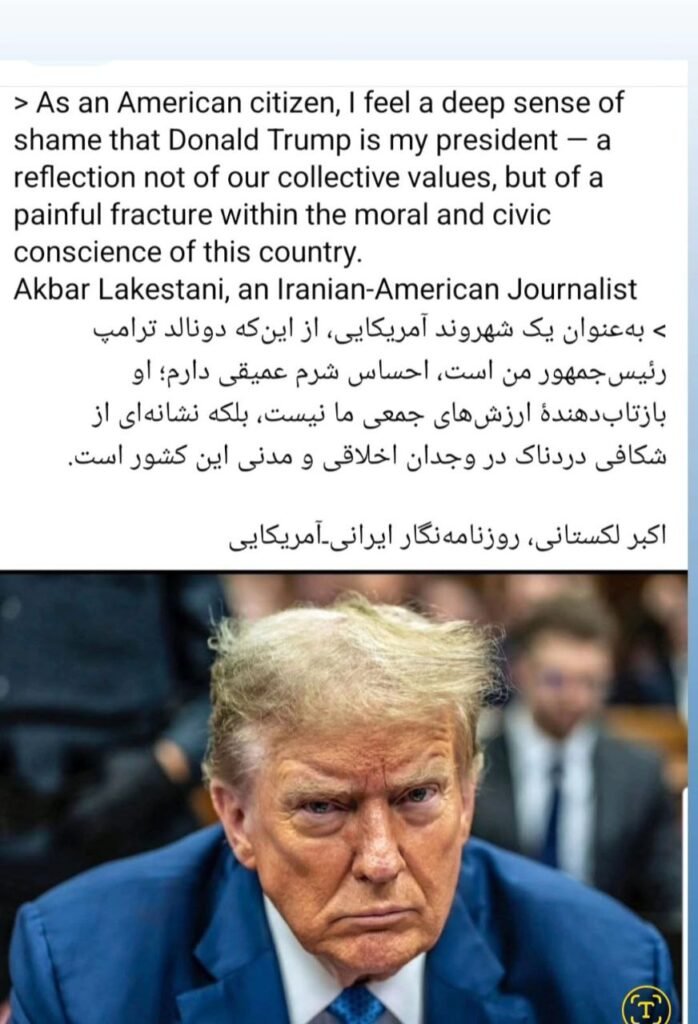 As an American citizen, I feel a deep sense of shame that Donald Trump is my president — a reflection not of our collective values, but of a painful fracture witوhin the moral and civic conscience of this country.