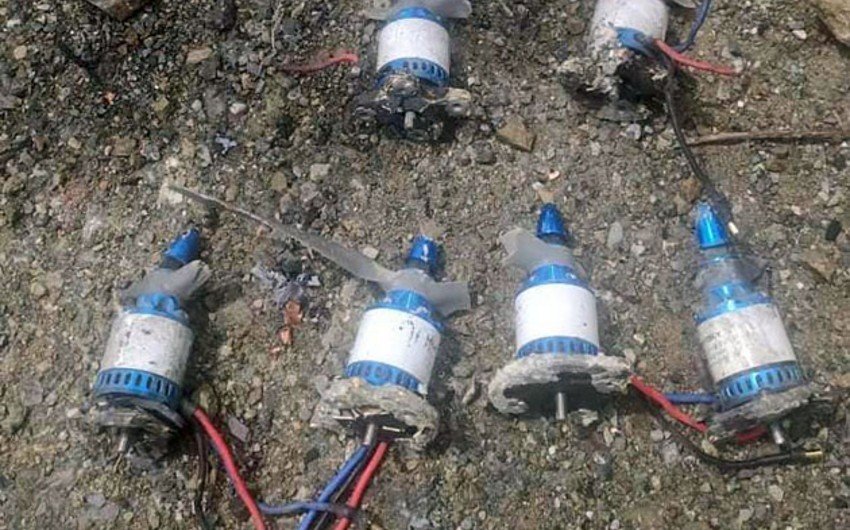 Təqdim olunan foto materiallarda zərbə PUA-larının qalıqları əks olunur.