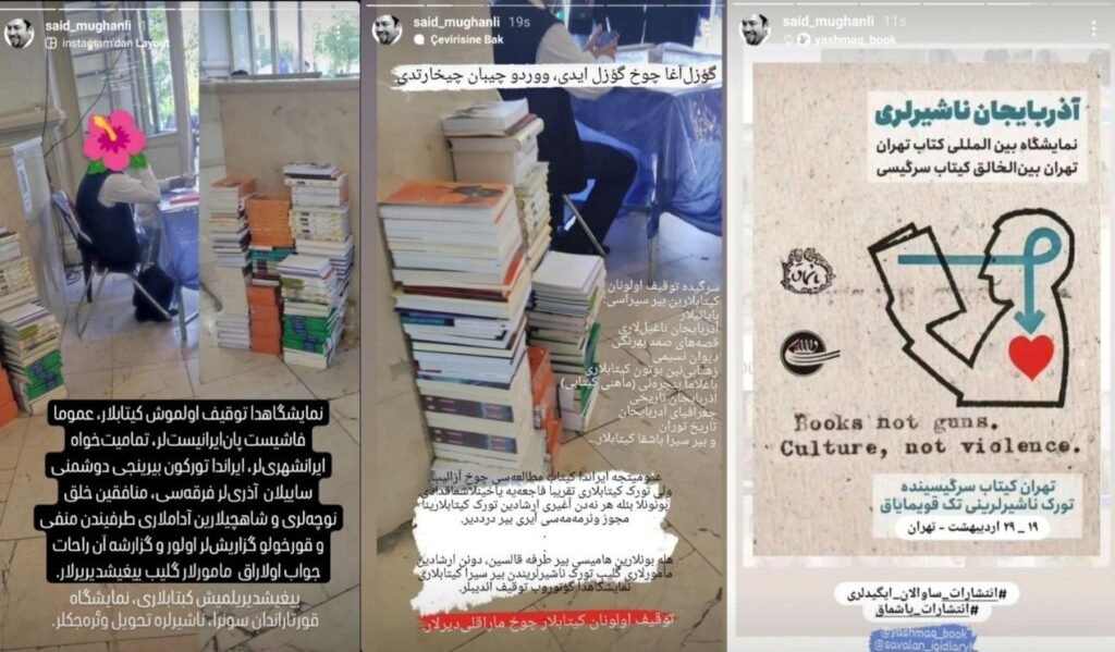 “Bayatılar, Azərbaycan nağılları, Səməd Behrənginin nağılları, Bağlama pəncərəsi, Nəsiminin şeirlər toplusu, həmçinin professor Zehtabinin bütün kitabları, Azərbaycan tarixi, Azərbaycan coğrafiyası, Turan tarixi və çapına icazə verilmiş digər kitablar İrşad Nazirliyinin məmurları tərəfindən yığışdırılıb”, – deyə Səid Muğanlı açıqlayıb.