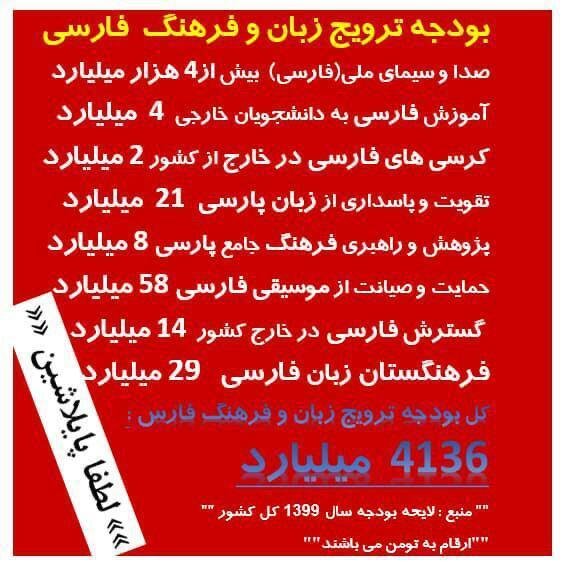 “National discrimination and fascism are not limited to non-Persian nations and ethnic peoples,” he said. In addition, trillions of our wealth is ruthlessly and unjustly spent on the development of a national language for them and a foreign and foreign language for us. All this is only a part of the budget allocated for the promotion of the Persian language. Trillions of tomans of our wealth are also spent on the country’s education system, the publication of books and magazines, and the development of the Persian language. The share of Azerbaijani Turkish and other ethnic languages’ languages and cultures in the country’s budget is zero.