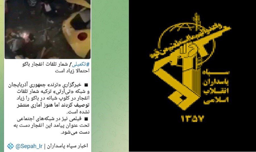 Azərbaycan Respublikaının rəsmilərinin partlayışın qaz sızması nəticəsində baş verdiyi, ölən və yaralananlar barədə dəqiq məlumat vermələrinə baxmayaraq İran İslam İnqilabı keşikçiləri Korpusuna (SEPAH) bağlı media qurumları hadisəni fərqli göstərməkdə davam edir.
