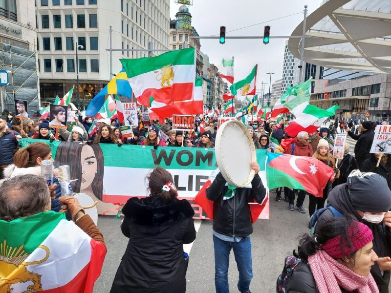 Aksiyada Avropanın bir şox ölkələrindən Brüsselə toplaşan mühacir iranlılar və Avropa insan haqları müdafiəçiləri qoşulub.