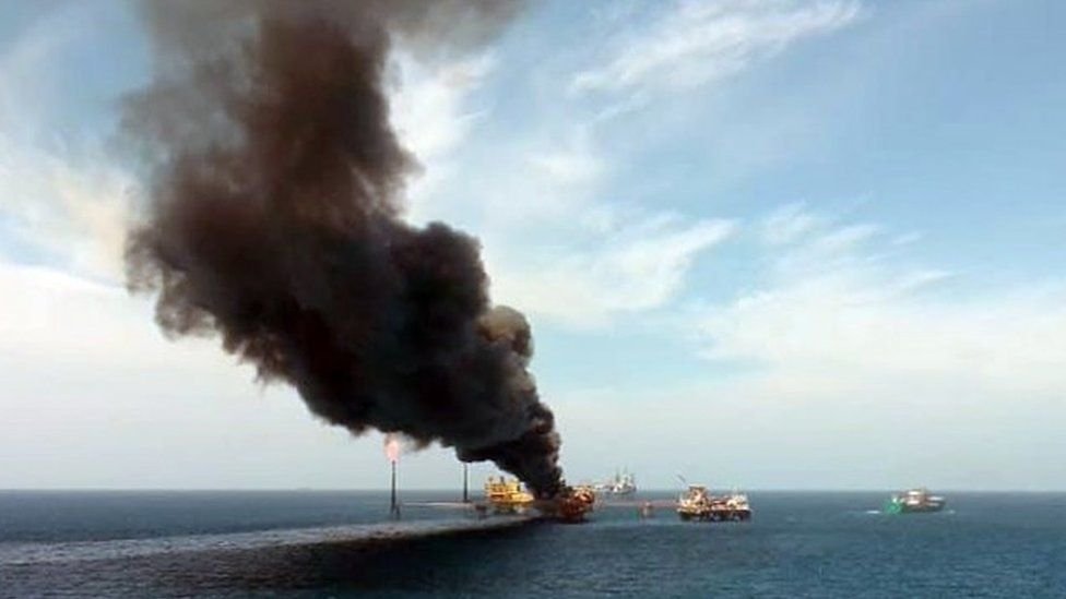 A fire at an offshore oil platform owned by Mexican state oil company Pemex killed at least five people (BBC) and injured six. Production was halted at more than one hundred oil wells.