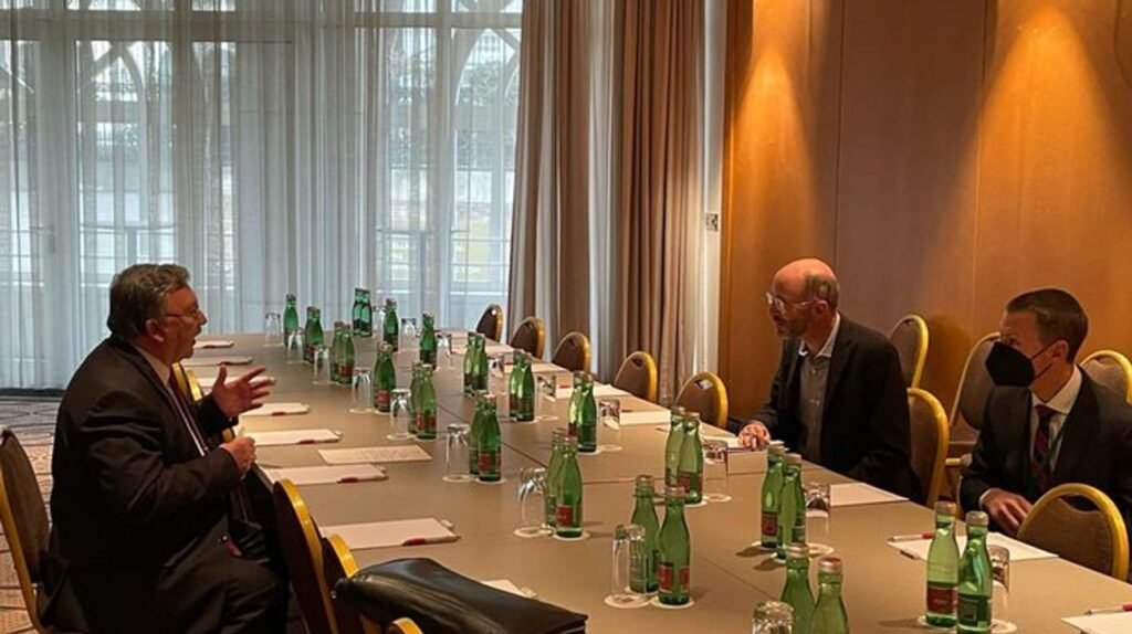 Russian chief envoy in Iran nuclear talks Mikhail Ulyanov meeting with US envoy Rob Malley. December 29, 2021