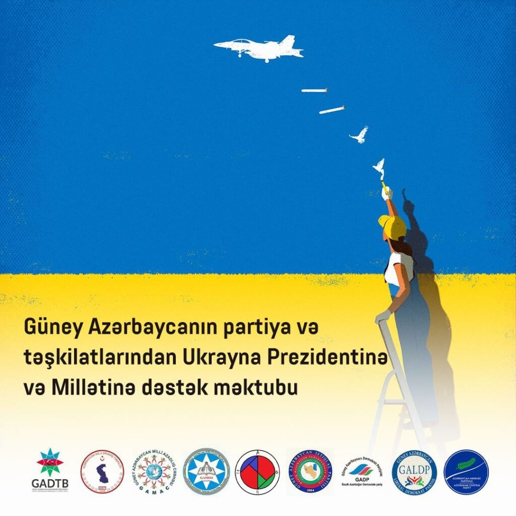 Biz Güney Azərbaycan təşkilatları və partiyaları Ukrayna xalqının işğalçı Rusiya ordusuna qarşı qəhrəmancasına müqavimətini dəstəkləməklə yanaşı, bütün hökumətləri, təşkilatları və insan haqları qurumlarını Ukrayna xalqına dəstək və yardım etməyə çağırırıq. Biz inanırıq ki, Ukrayna xalqının müqaviməti vətənin müdafiəsi və öz milli müqəddəratını təyin etmək hüququdur və Sizin müdrik rəhbərliyinizlə yaxın gələcəkdə bu işğal müharibəsində Ukrayna xalqının qələbəsini görəcəyik.