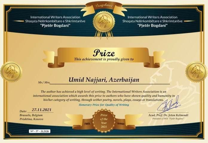 Azərbaycanlı şair və tərcüməçi Ümid Nəccari Beljikin 2021-ci ilin nüfuzlu “Bogdani” uluslararası ödülünə layiq görülüb.