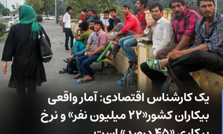 این کارشناس اقتصادی با رد کردن نرخ ۷.۵ درصدی بیکاری توسط «مرکز آمار ایران»، اعلام کرد که که تعداد واقعی بیکاران بیش از ۲۲ میلیون نفر و نرخ بیکاری به ۴۵ درصد افزایش پیدا کرده است.
