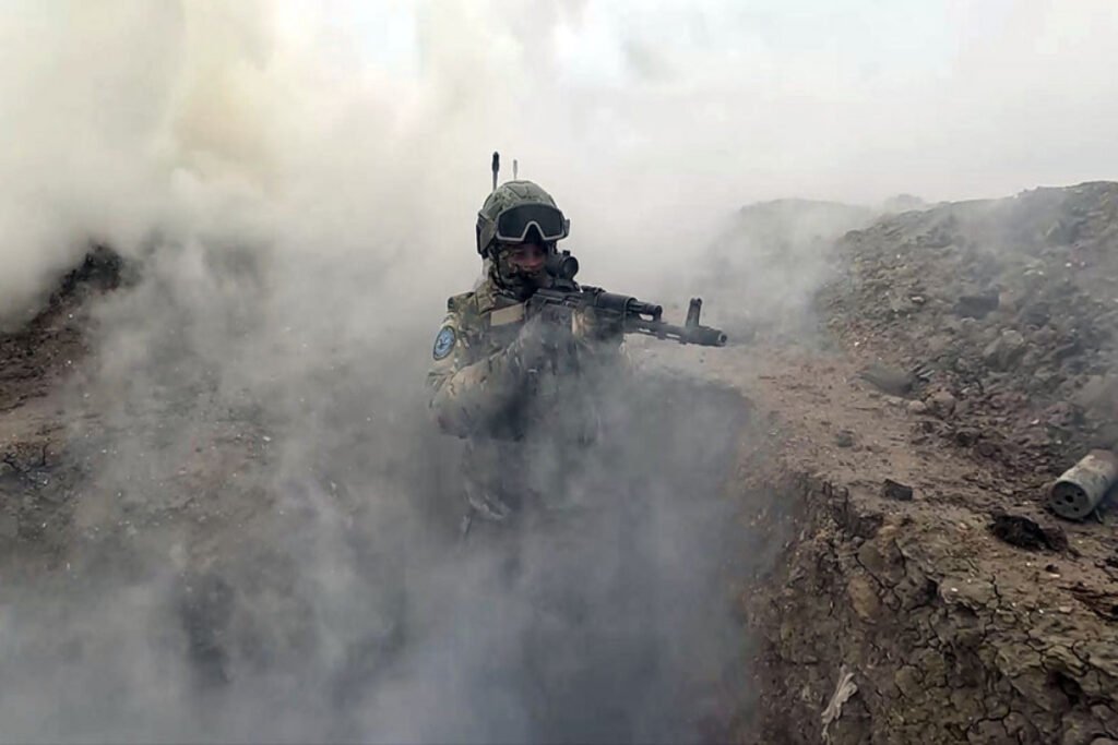 Müdafiə Nazirliyindən verilən xəbərə görə, real döyüş şəraitinə uyğunlaşdırılmış təlim məşqlərində xüsusi təyinatlılar müasir texnologiya və yeni döyüş taktikasından istifadə edərək antiterror əməliyyatlarının, o cümlədən yaşayış məntəqələrindəki infrastruktur obyektlərində gizlənən şərti düşmənin terror qruplaşmasının zərərsizləşdirilməsi üzrə tapşırıqları icra ediblər.
