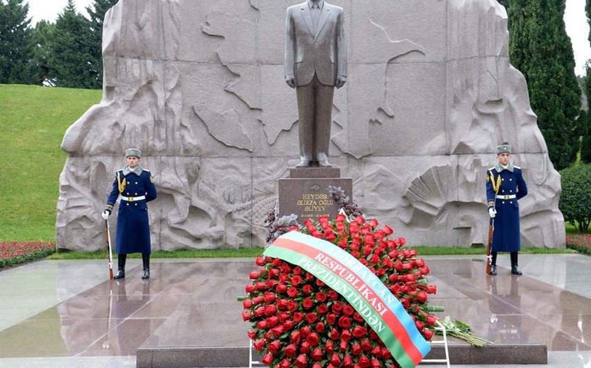 Əvvəlcə Prezident İlham Əliyev və birinci xanım Mehriban Əliyeva Fəxri xiyabanda ulu öndər Heydər Əliyevin xatirəsinə ehtiramlarını bildirdilər.