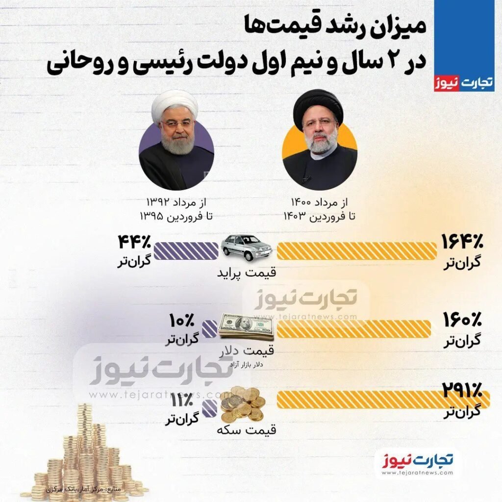 İran İslam Respublikasının sabiq prezidenti Həsən Ruhani və indiki prezidenti İbrahim Rəisi hökuməti zamanı bahalaşmanın faiz dərəcəsi müəyyən olunub. 13-cü hökumət yüksək qiymətlərin və qiymət artımının rekordçusu olduğunu nümayiş etdirib: