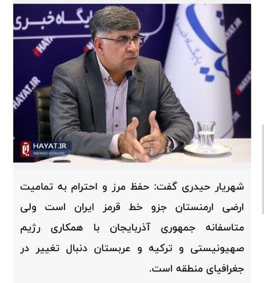 “Bölgənin geosiyasətində baş verən dəyişiklik İranın qırmızı xətlərindən biridir. Biz keçmişdə çox yaxşı münasibətlərimiz olan qonşu Ermənistanla ümumi sərhədlərimizdə hər hansı dəyişikliyi qəbul etmirik.