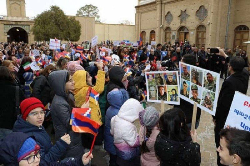 Aksiyaya qatılan İran erməniləri Azərbaycan və Türkiyə əleyhinə şüarlar səsləndiriblər.