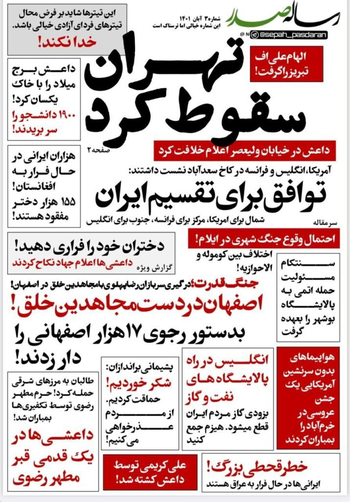 “Tehran squt edib / İlham Əliyev Təbrizi ələ keçirib / İranı parçalamaq üçün yekun anlaşma baş tutub”. Bu başlıqlar xəyali olsa da, separatçıların arzuladığı azadlığın gələcəyindən xəbər verir”.