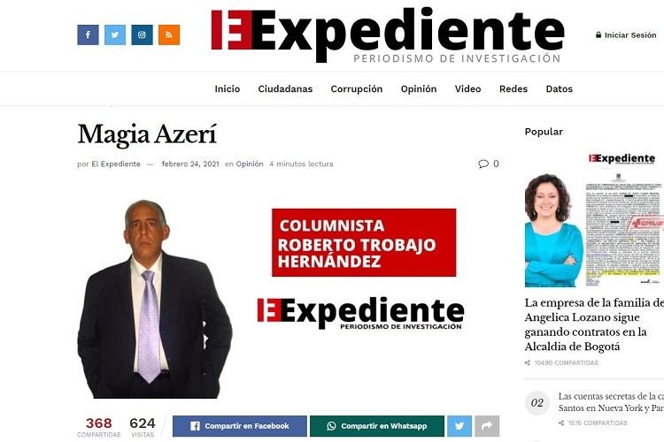 Kolumbiya və Latın Amerikasının ən nüfuzlu siyasi xəbər ajanslarından olan “El Expediente” saytında tanınmış jurnalist Roberto Trobaxonun müəllifi olduğu “Azərbaycan möcüzəsi” başlıqlı yazı dərc olunub. Yazıda Azərbaycanın illər boyu təcavüzə məruz qaldığı, Dağlıq Qarabağ və 7 ətraf şəhristan olmaqla ərazisinin toplam yüzdə 20-nin Ermənistan tərəfindən işğal edildiyi, 1 milyona yaxın azərbaycanlının öz yurdlarından qovularaq məcburi köçkünə çevrildiyi vurğulanıb. Bu təcavüz ərzində erməni silahlı qüvvələri tərəfindən 1992-ci ilin 26 fevriyə tarixində Xocalı şəhərində soyqırım törədildiyi, bu zaman 63-ü uşaq və 106-ı qadın olmaqla 613 nəfər qeyr-nizami azərbaycanlının amansızcasına qətlə yetirildiyi bildirilir. Qeyd olunur ki, bütün bunlara baxmayaraq, Azərbaycan son 30 il ərzində yüksək siyasi, iqtisadi və mədəni-insani gəlişmə yolu keçib, bütün dünya üçün çoxmədəniyyətlilik modelinə çevrilib. Son savaş zamanı Azərbaycanın nəhayət erməni təcavüzünə son qoymağa və öz tarixi ərazilərini azad etməyə nail olduğu diqqətə çatdırılıb. Ancaq bu savaş zamanı da Ermənistanın qeyri-nizami insanları hədəf aldığı, Gəncə, Bərdə və münaqişə bölgəsindən kənarda yerləşən başqa Azərbaycan şəhərlərinə qadağan olunmuş döyüş başlıqlarından istifadə etməklə ballistik raket zərbələri endirdiyi və bu hücumların Human Rights Watch, Amnesty İnternational kimi beynəlxalq təşkilatlar tərəfindən pisləndiyi söylənir. Məqalədə münaqişə ilə bağlı Birləşmiş Millətlər Təşkilatı Əmiyət Şurasının qətnamələrinə 30 ildir əməl etməyən Ermənistanın işğal etdiyi ərazilərdə Azərbaycanın tarixi-mədəni irsini məqsədli şəkildə tamamilə məhv etdiyi qeyd edilib. Yaşam çevrəsinə çoxlu ziyan vurduğu, azad edilmiş şəhərlərin Hiroşima ilə müqayisə edildiyi və 30 il ayrılıqdan sonra məcburi köçkünlərin öz evlərinə qayıda bilməsi üçün Azərbaycanın hazırda bu ərazilərdə yenidənqurma işləri apardığı bildirilib.