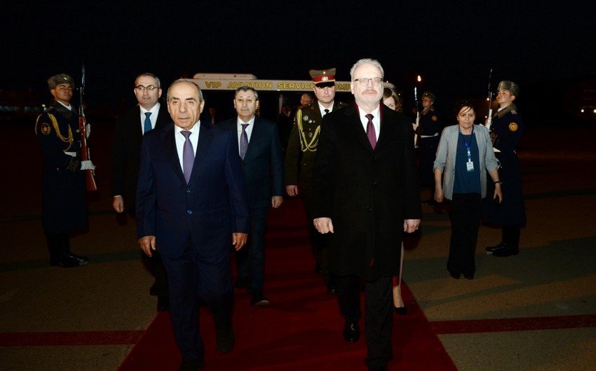 Latviya Prezidenti Egils Levitsi Azərbaycanın Baş nazirinin birinci müavini Yaqub Eyyubov, xarici işlər nazirinin müavini Xələf Xələfov və digər rəsmi şəxslər qarşılayıblar. (report)
