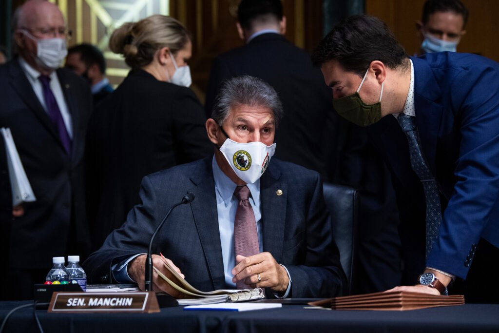 UNITED STATES - AUGUST 04: Sen. Joe Manchin, D-W.Va., arrives for the Senate Appropriations Committee markup of the FY 22 Energy and Water, Agriculture, and MilCon VA Appropriations Bills, in Dirksen Building on Wednesday, August 04, 2021. (Photo By Tom Williams/CQ Roll Call)