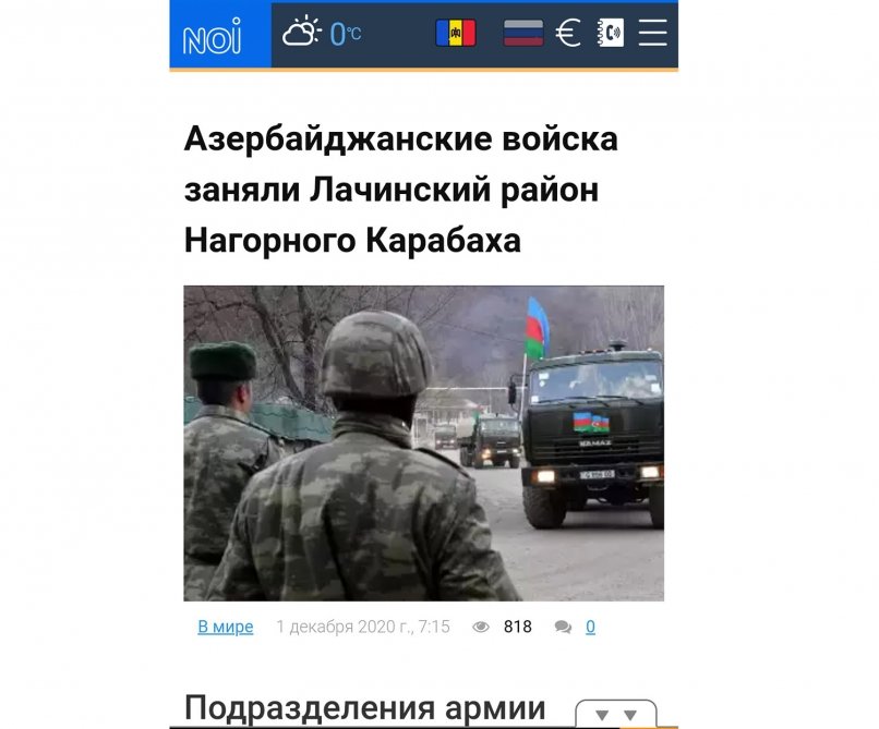 Belə ki, “NOİ.md”, “publika.md”, “deschide.md” və digər portalların yaydıqları informasiyalarda Azərbaycan Silahlı Qüvvələrinin ordu birləşmələrinin Laçın rayonuna daxil olması barədə məlumat verilib.