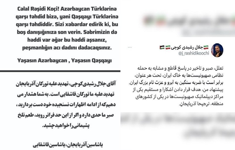 Qeyd edək ki, İsrailin Dəməşq şəhərində SEPAH komandirlərinin istifadə etdiyi binaya zərbə endirməsundən sonra, Calal Rəşidi Kuçi Azərbaycan Respublikasına qarşı təhdidamiz ifadələr işlədib.