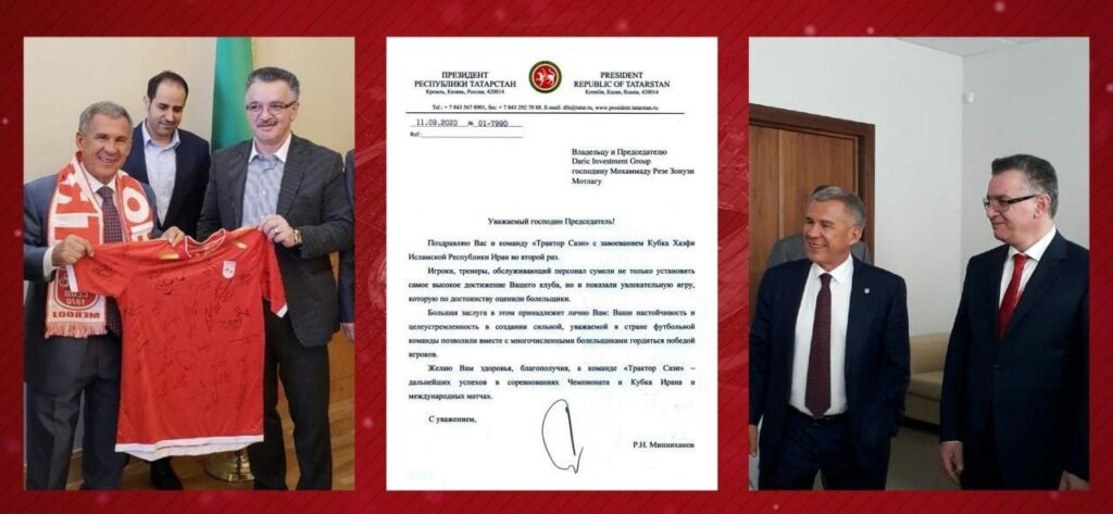 According to the supporters and quoting the website of the Tractor Club, the President of the Republic of Tatarstan Rostam Minikhanov, who has a close friendship and relationship with Mohammad Reza Zanozi Motlagh, the owner of the Tractor Club, congratulated him on the team’s championship in the Iran Football Cup.