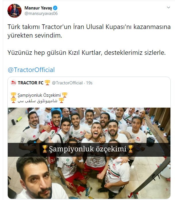 Biz də Azərbaycan Mərkəz Partiyasının başqanı, ANT Televiziyasının rəhbəri Saleh Kamrani başda olmaqla Tiraxtur timinin qələbəsi münasibətilə timin üzvlərini və dəstəkçilərini səmimi-qəlbdən təbrik edirik!