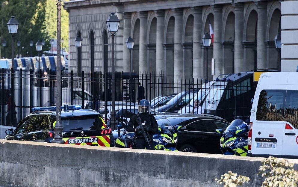 French Gendarmes escort a convoy understood to be transporting Salah Abdeslam, the prime suspect in the November 2015 Paris attacks, upon its arrival at the Palais de Justice of Paris - Paris' courthouse, on September 8, 2021, for the start of the trial of the November 2015 Paris attacks' defendants. - The biggest trial in France's modern legal history begins on September 8, 2021 over the November 2015 attacks on Paris that saw 130 people killed at bars, restaurants and the Bataclan concert hall. The suicide bombing and gun assault by three teams of jihadists, planned from Syria and later claimed by the Islamic State group, was France's worst post-war atrocity. (Photo by Thomas COEX / AFP)